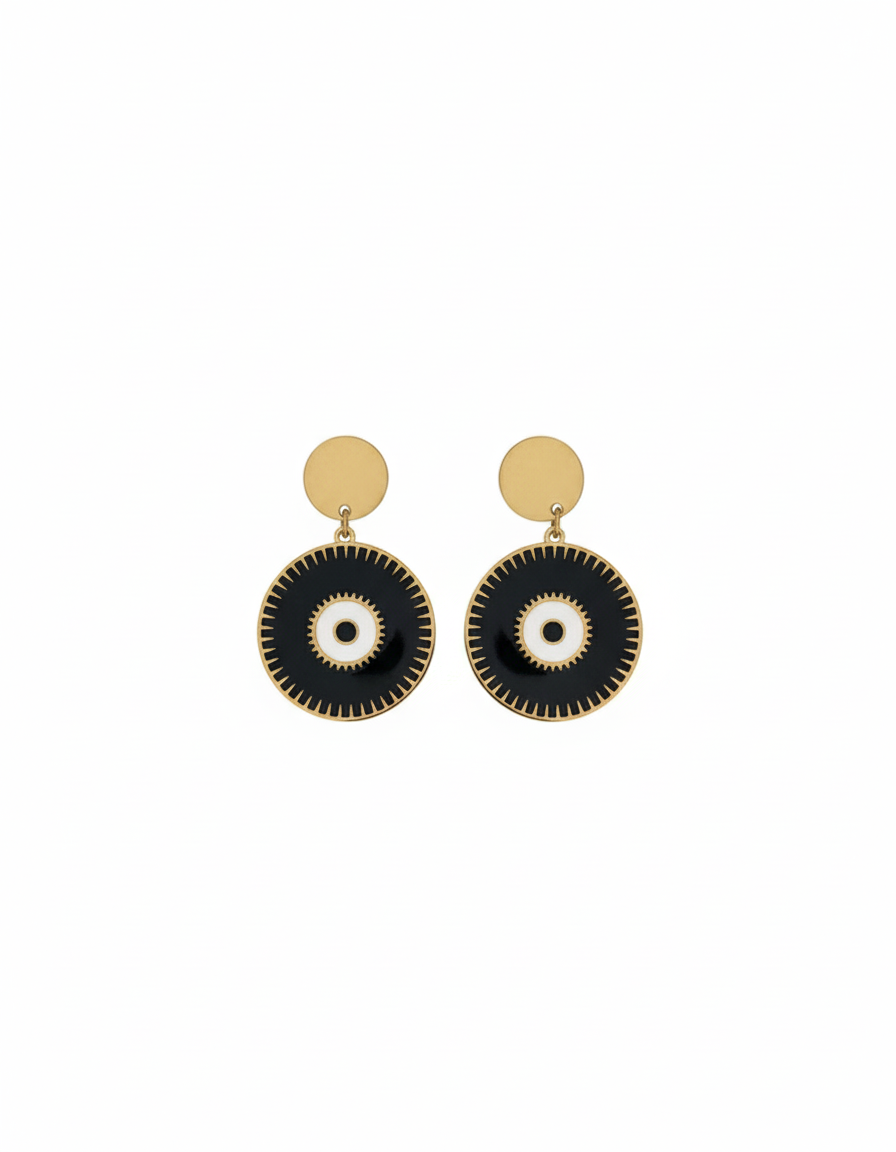 Joli design pour ces boucles d’oreilles dorĂ©es en Ă©mail qui vous porteront chance.