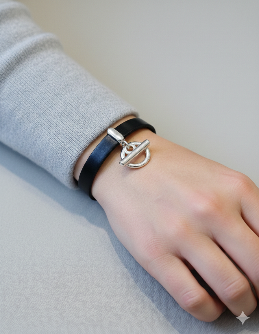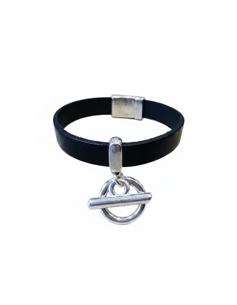 Élégant Bracelet cuir, rond et barre.