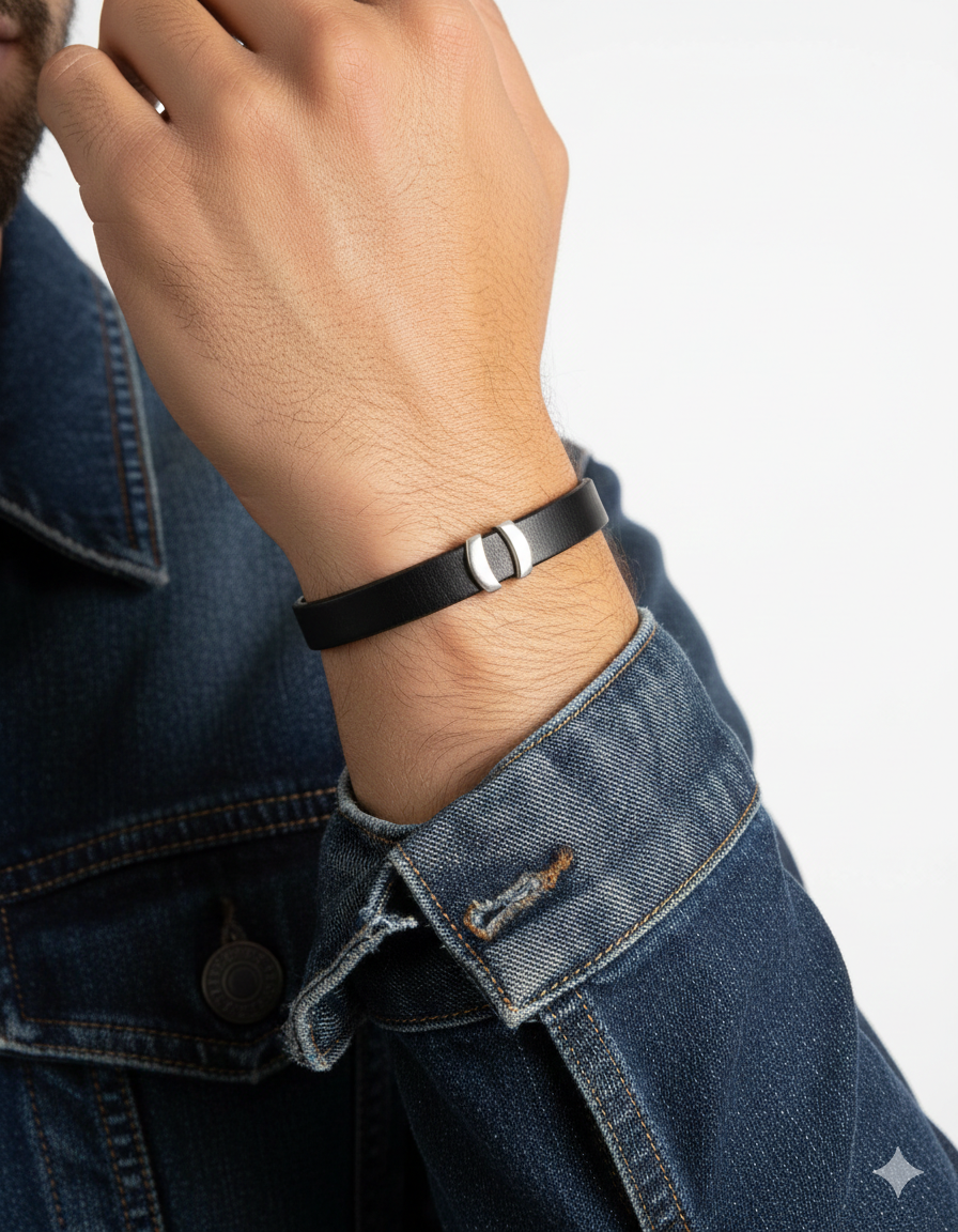 Bracelet masculin en cuir noir