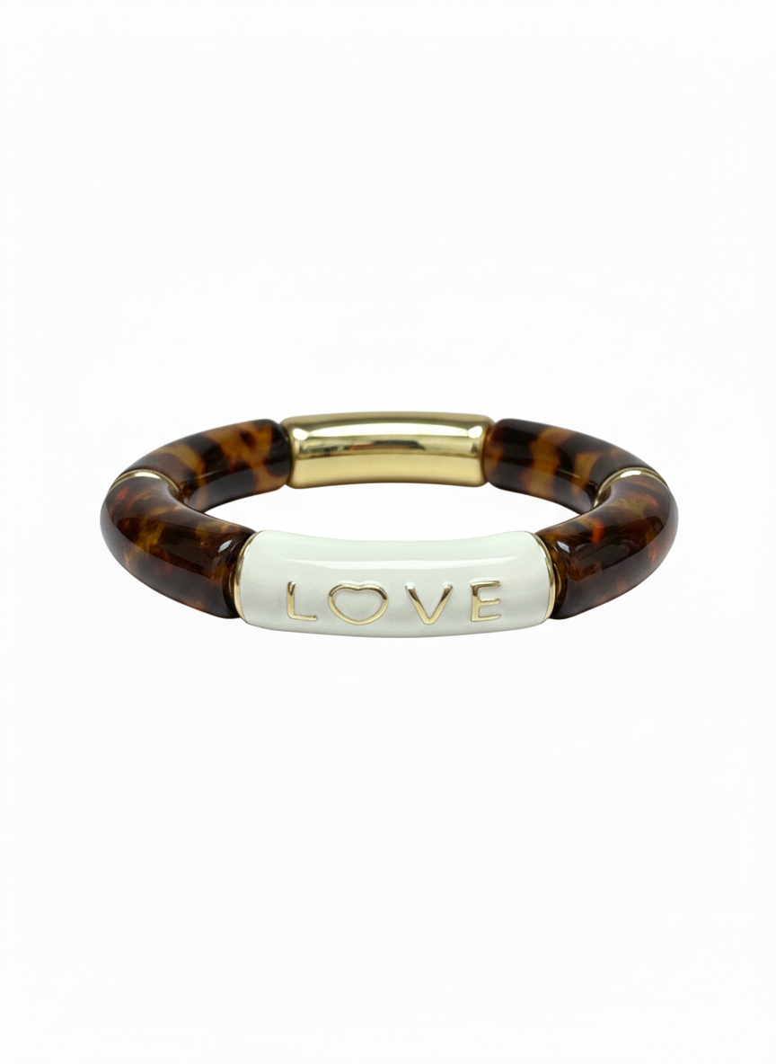 Laissez-vous envoĂ»ter par cette collection exclusive conçue pour cĂ©lĂ©brer l’amour avec audace ! Le bracelet Maor se pare ici d’une perle mĂ©tallique “LOVE” dorĂ©e et blanche, sublimĂ©e par un ensemble de perles en acrylique aux nuances imprimĂ© lĂ©opard, dorĂ©es et d’une touche de blanc Ă©clatant.