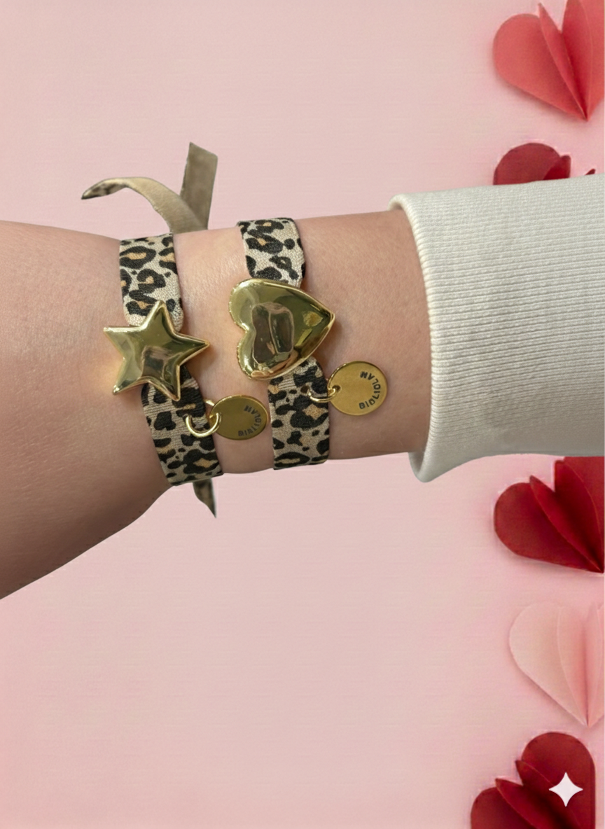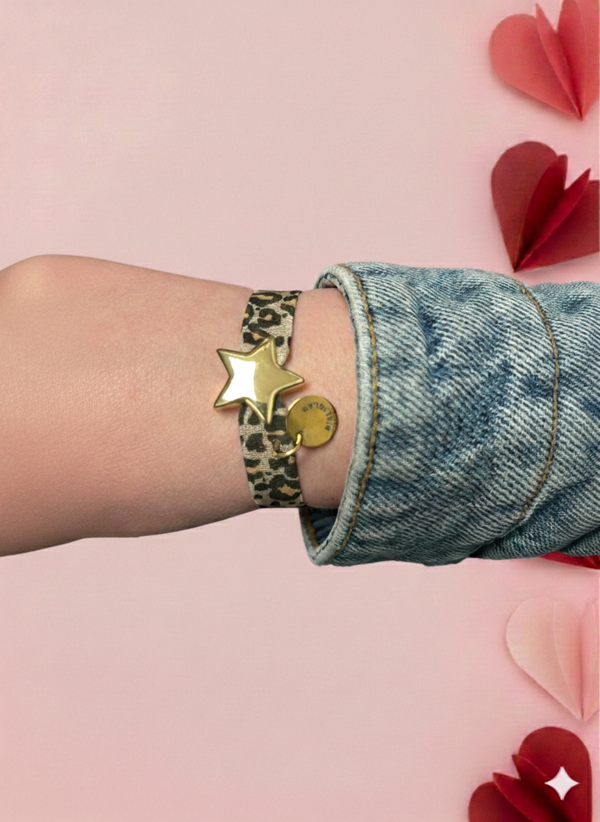 Affirmez votre style avec ce bracelet au motif léopard, une pièce de caractère qui fusionne audace animale et finitions précieuses. L’éclat d’une étoile dorée vient illuminer le poignet, accompagnée de la médaille signature Bibliglam, gage d’un bijou pensé avec soin pour notre boutique.