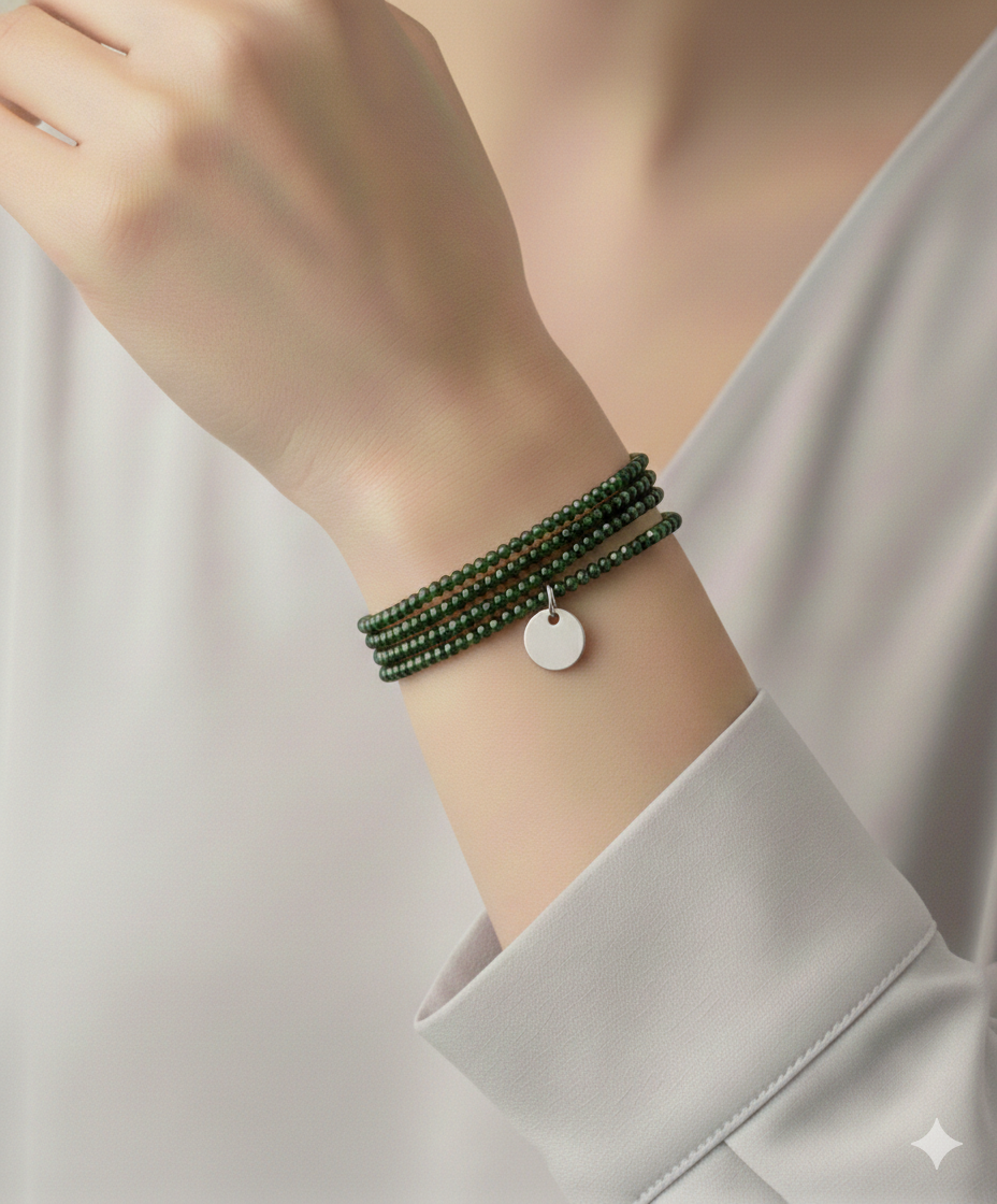 Bijou élastique facile à porter selon votre look du jour en bracelet multirang ou collier.