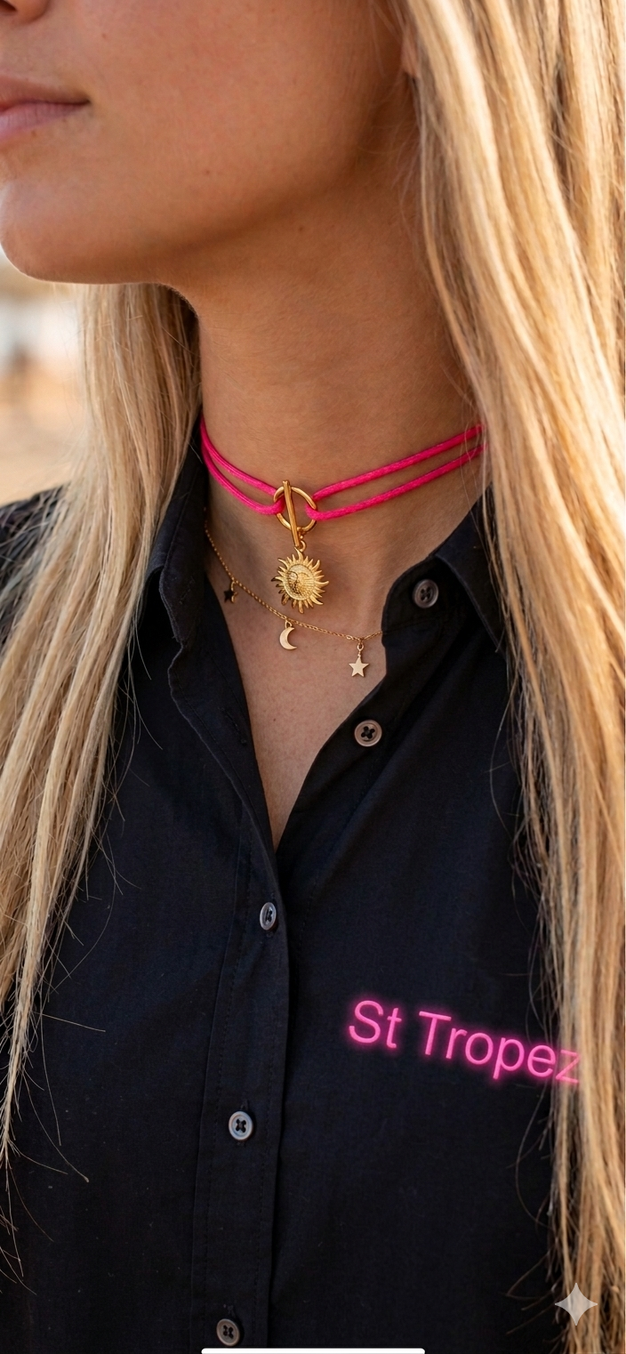 Collier réglable rose fluo