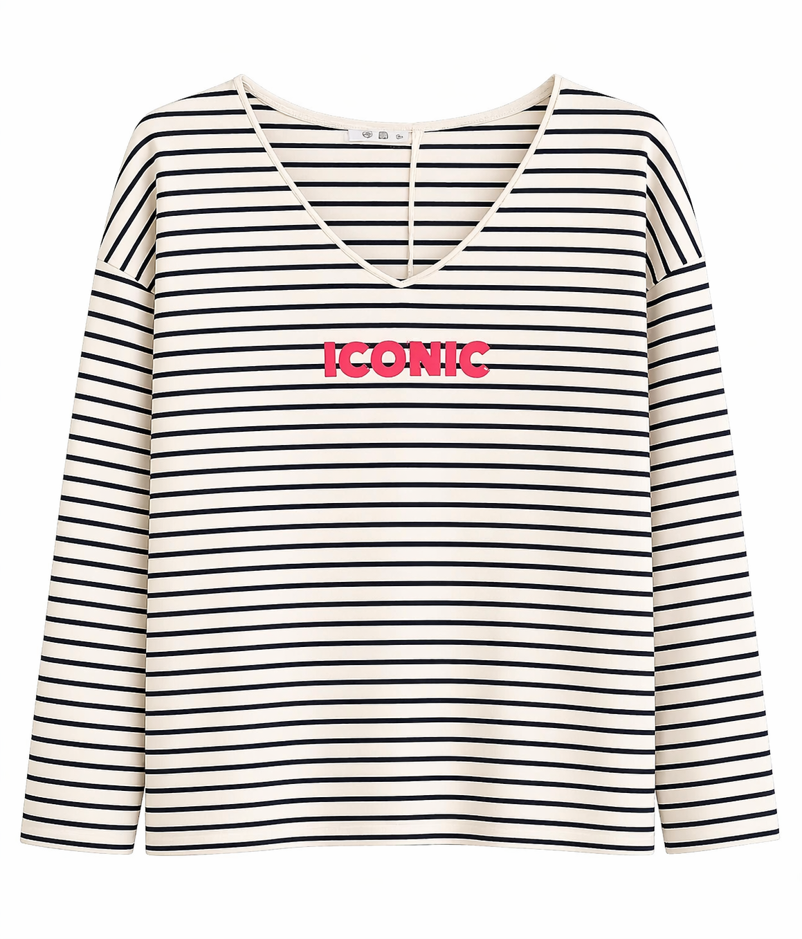Marinière rayures Iconic taille unique parfaite avec vos looks de printemps! Portez la avec un jean, un short ou une jupe longue!