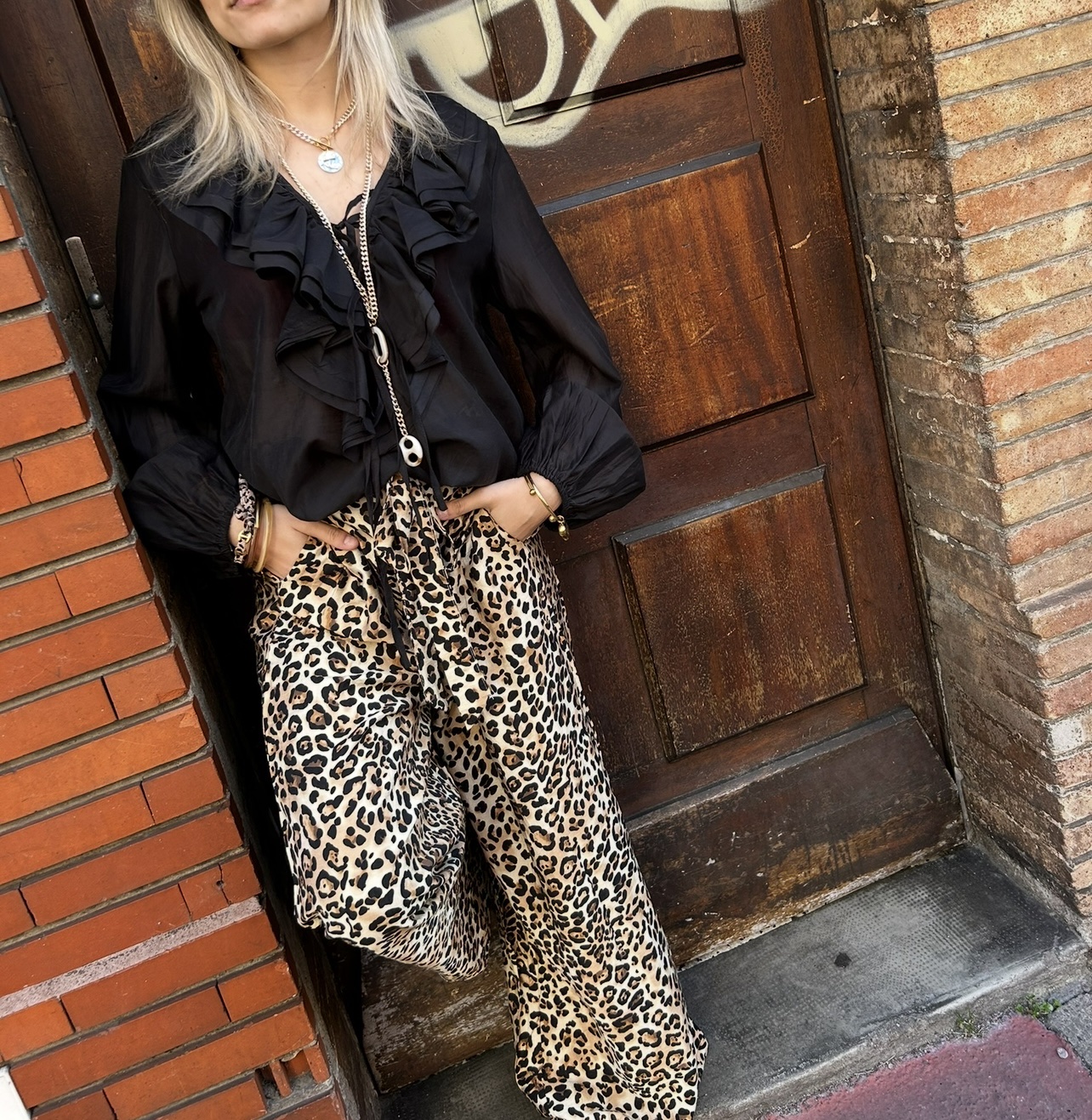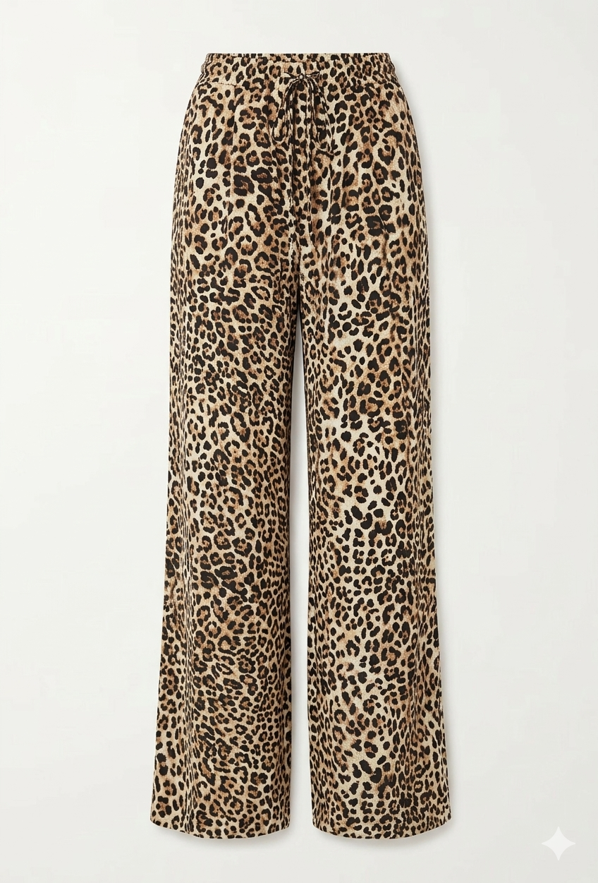 Pantalon fluide et aérien au motif léopard intemporel, conçu dans une coupe large pour un tombé élégant et un confort absolu. Facile à porter en chic décontracté, il s’adapte à toutes les occasions avec style. Sa taille unique convient du 36 au 42-44, épousant naturellement la silhouette.