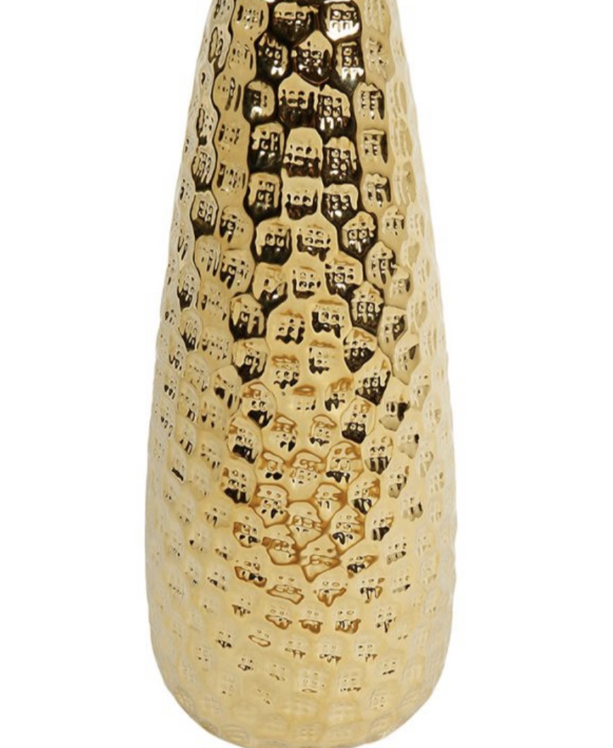 Ce vase cylindrique en céramique dorée, apporte une touche de sophistication à votre intérieur. Sa silhouette épurée et sa finition brillante en font une pièce idéale pour créer une décoration élégante, qu’il soit utilisé seul ou accompagné de fleurs.