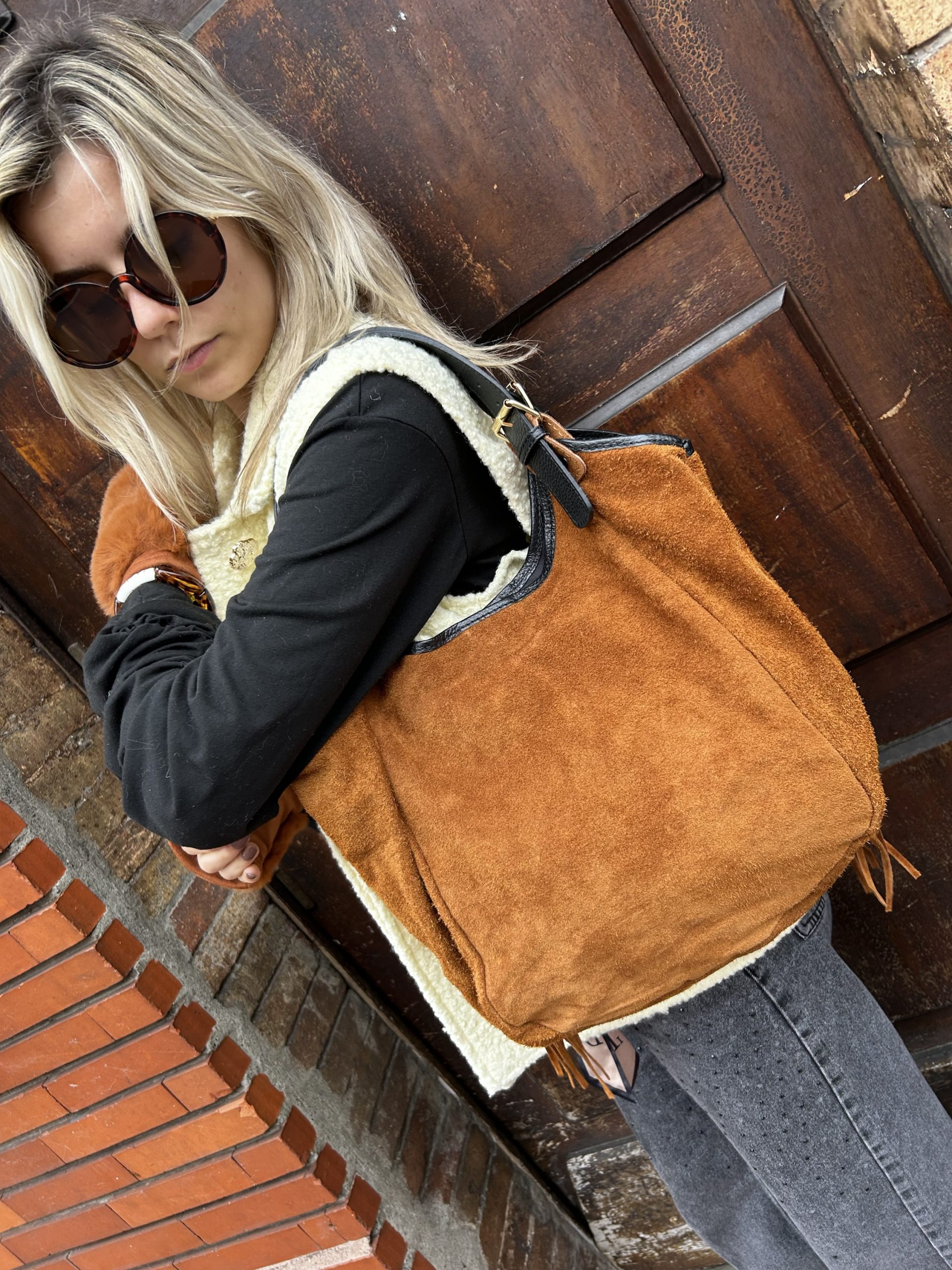Sac en daim franges camel. Parfait pour sublimer vos looks chic décontractés. Il s’accorde facilement avec toutes les couleurs et styles.
